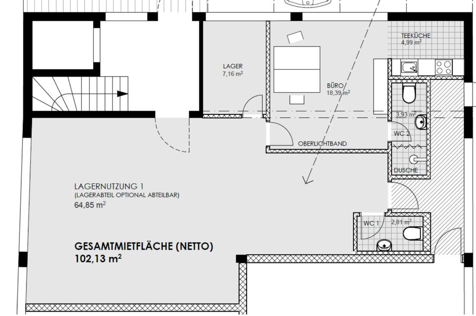 65 m² TanzschuleServicefläche mit 38 m² Büro, 2 WCs, Stellplätze